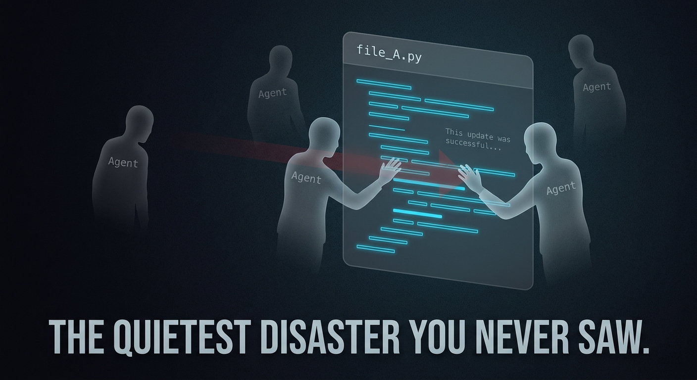 Two agents touch the same shared file. Both make perfectly reasonable changes. One write lands after the other. The build still passes. The repo still looks clean.