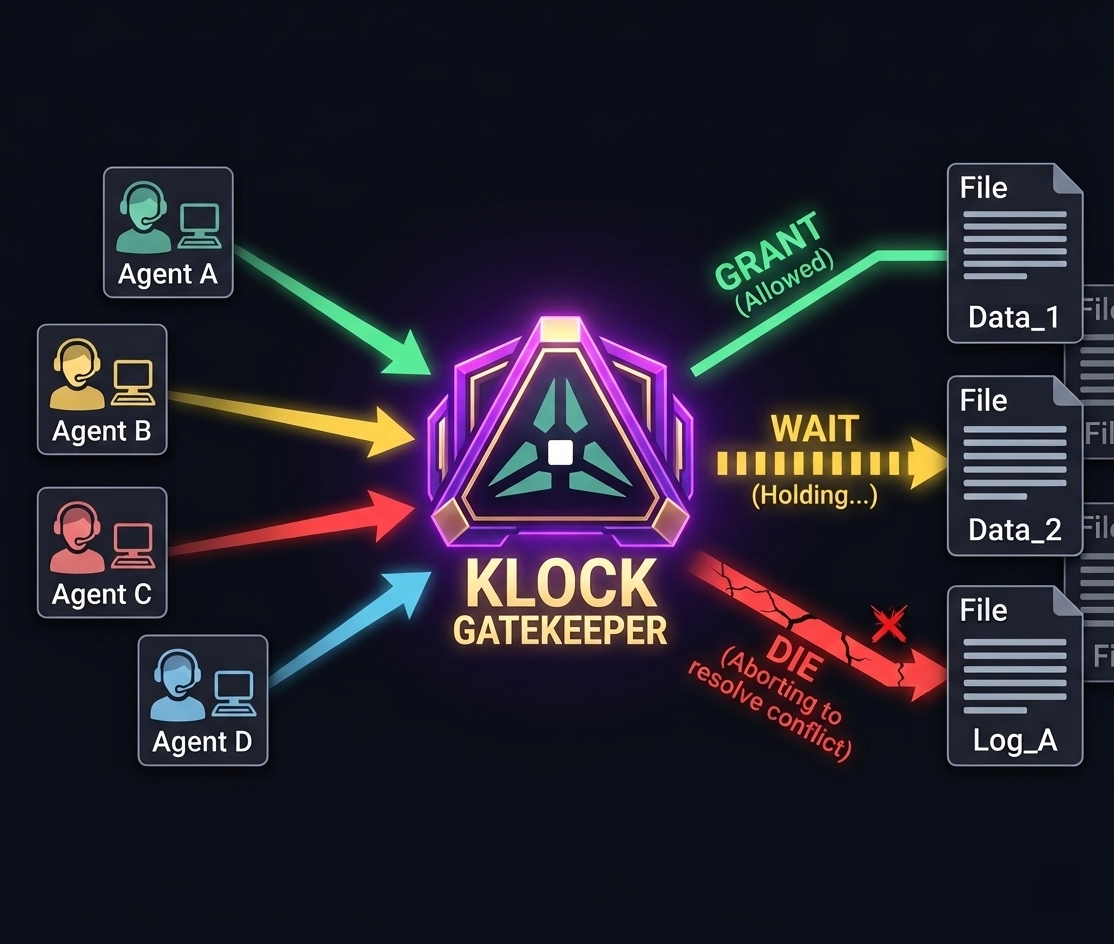 Before an agent mutates a shared file, it asks Klock first.